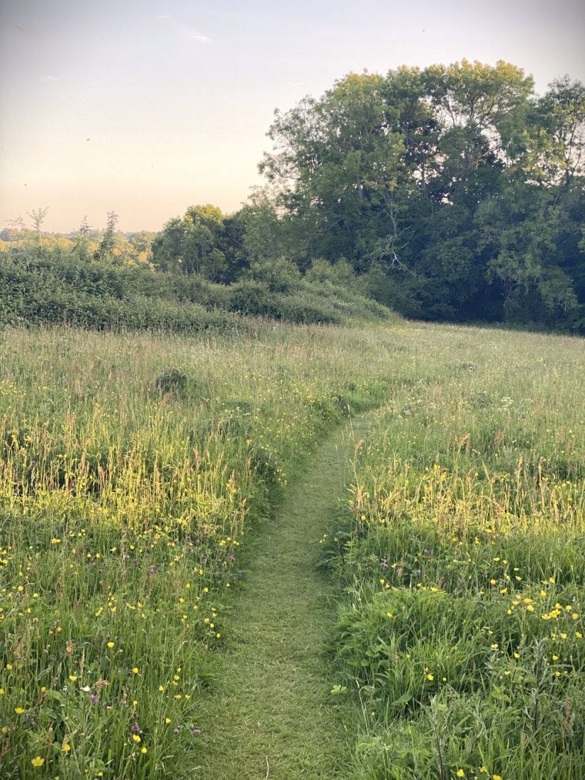 And other places where a path whose width is adequate and charming in spring is no longer as charming in summer.