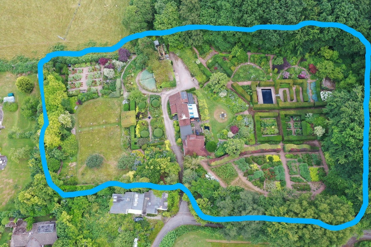 There was no garden to speak of, which was just what I wanted. It gave me a clean slate. And the setting was amazing for a garden - the house right in the middle of two acres of grassland. It’s circled at the south side (on the right in this photo and up the slope, counter intuitively) by a line of old trees. This creates a kind of amphitheatre effect and is surprisingly symmetrical. It’s perfect apart maybe from sloping quite steeply to face the north, but I don’t mind that. Lovers of tender plants might, perhaps. And I might when I’m a bit older……