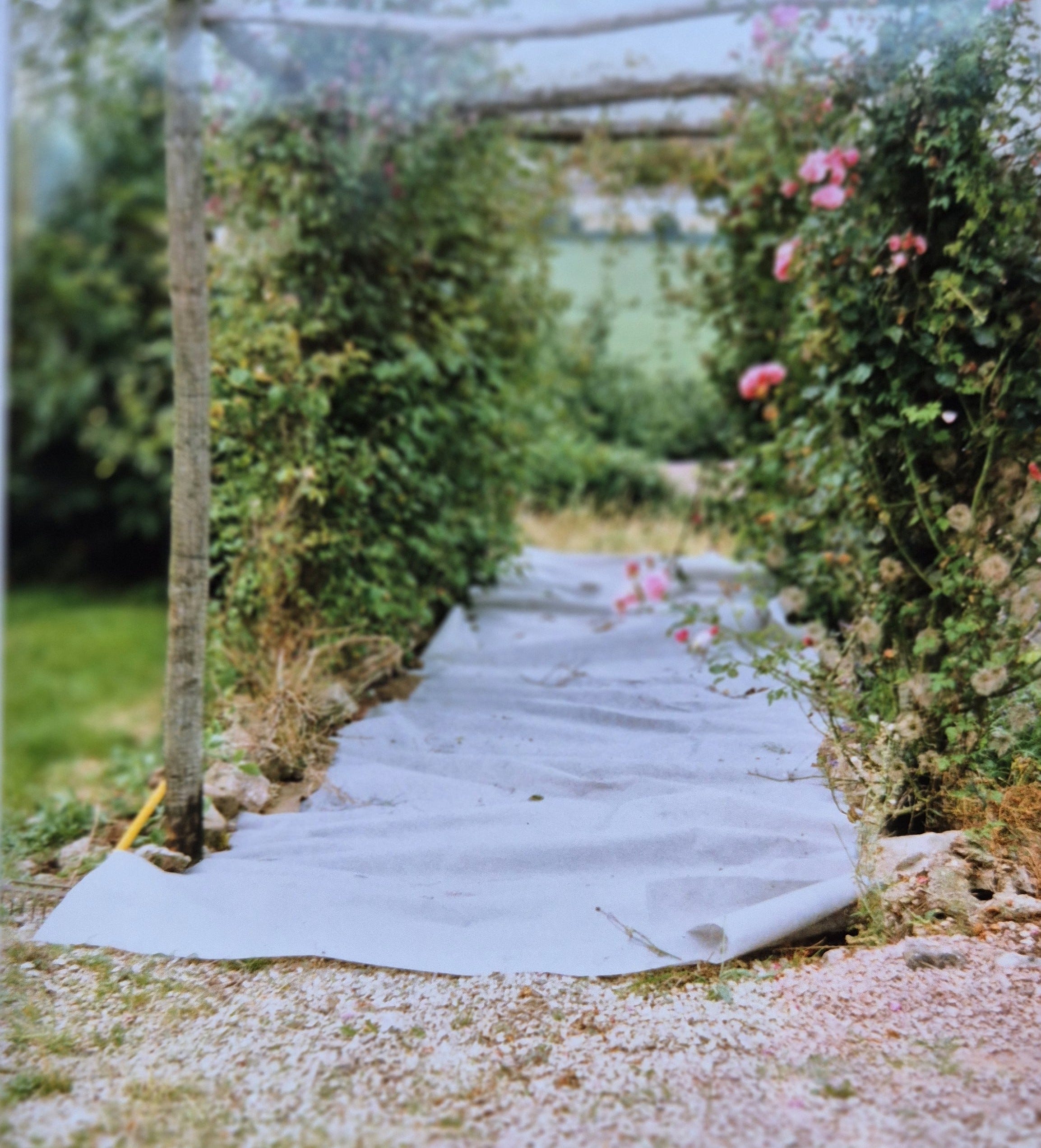 Grass was not very happy making. It gets soggy and slippery. It’s hard to mow round a bird bath, and I never even contemplated doing that edging thing. Some friends suggested we make paths using some stuff we came to know by the name of Tipar, which was the base material they stick carpet on to. To make carpet. We got a HUGE roll of it, which was all the carpet people would sell us, and they delivered it to the top road. I have no idea how we got it down to the garden, or indeed, how we persuaded them to sell us some and deliver it. But it squashed and killed the grass on the paths.