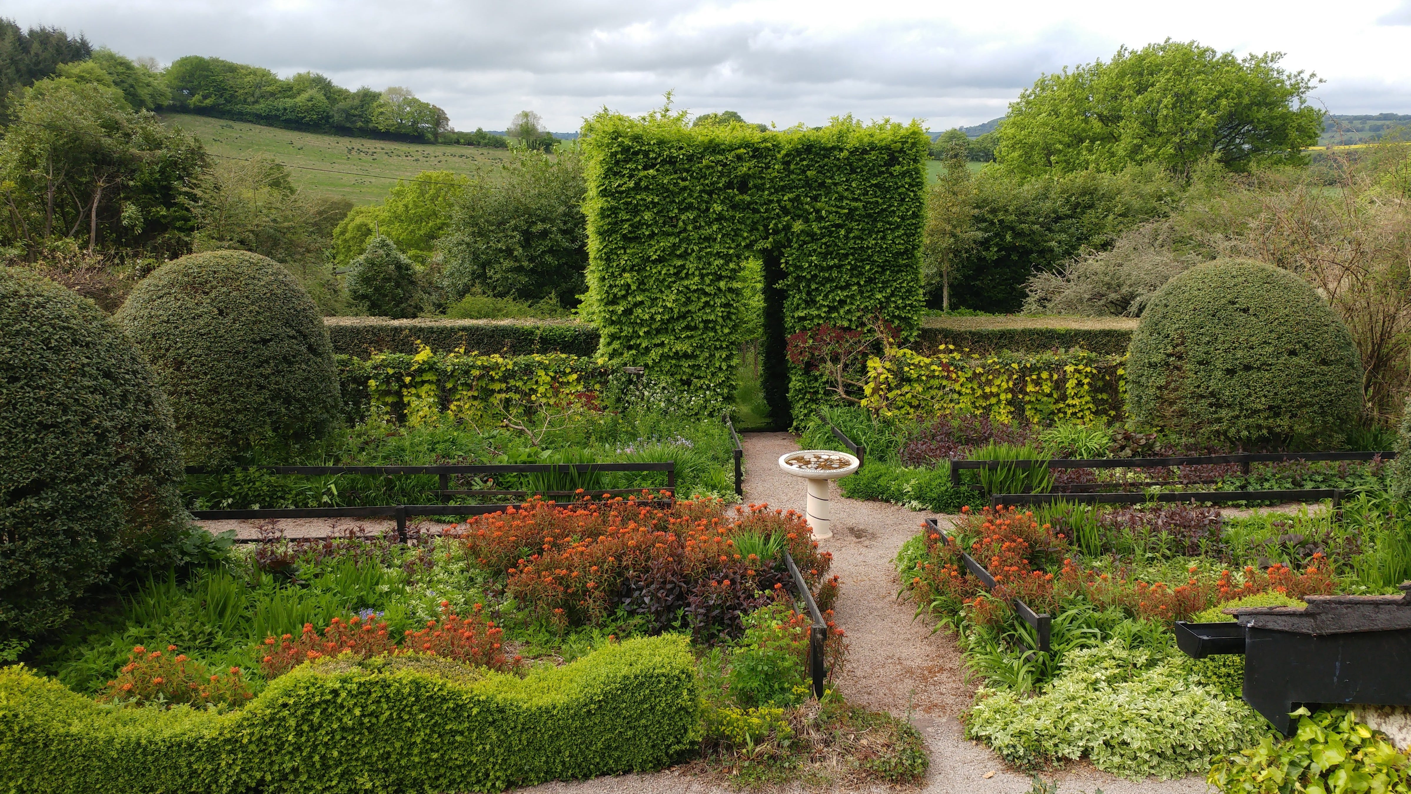 You can see the recently departed box hedge along the back, to either side of the Hornbeam Tunnel. I loved the wavy hedge at the front too, but that also got the blight and had to go. That story is here.