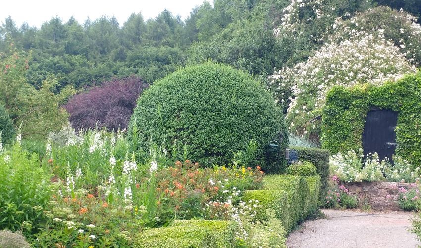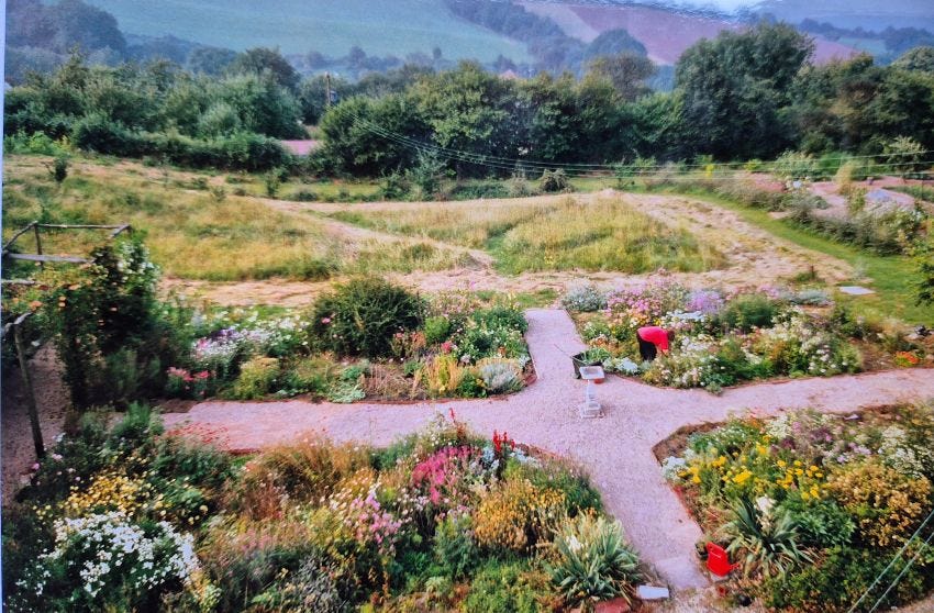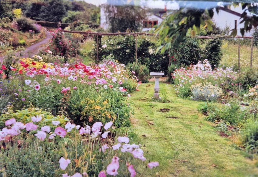 The garden looks very cottagey here (not my favourite thing) but clearly it needed edging of some sort to separate it from the meadow, which looks as if it was in the process of being mowed. We planted a box hedge along that boundary, which we have just had to remove due to box blight. Sort of again - back to square one.